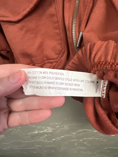 Description : Cropped zip-up hoodie, two front patch pockets, elastic waist and elastic cuffs, and a drawstring hood
