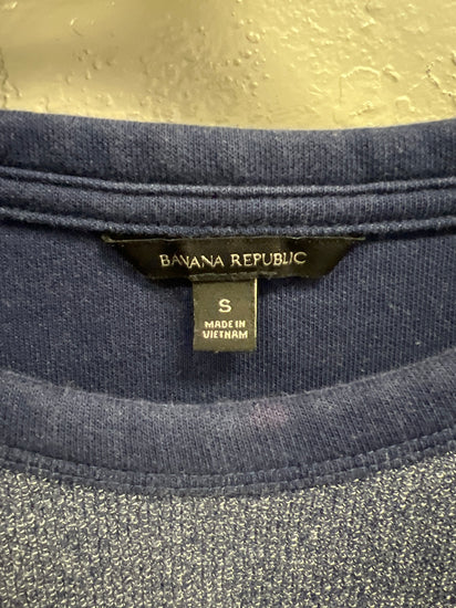 Description : Laid-back casual is the name of the game with this pullover by Banana Republic. Rounded neckline, dropped shoulder seams, slightly boxy fit and a high-low hem.