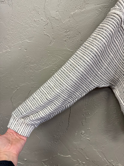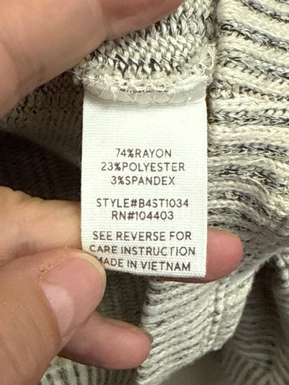 Description : Wrap yourself in comfort with the Striped Drop Shoulder V Neck Knit Top by Blu Pepper. The taupe color and drop shoulder design add a cozy touch to this stylish striped top. Perfect for a night in or a casual day out, you'll love the comfort and style this top brings