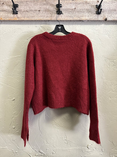 Description : Beatiful and luxurious mohair blend sweater from cinq a sept. This soft and fuzzy sweater is slightly cropped with split cuffs.
