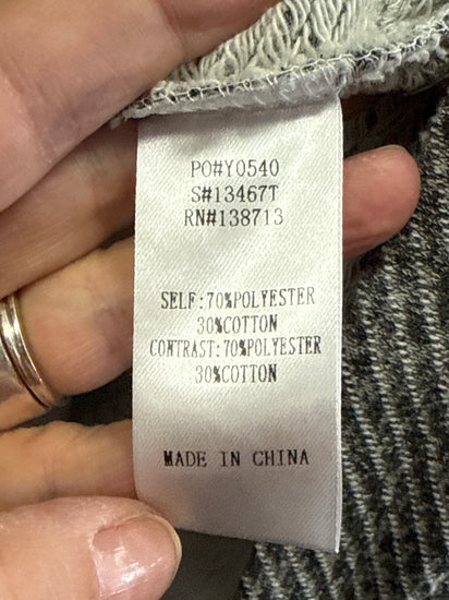 Description : Casual long-sleeve pullover in two-tone gray with a lighter gray yoke, sleeves and trim and a darker heathered gray body, featuring a round neckline, dropped shoulders and front seam-detailed kangaroo pocket.