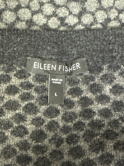 Description : Wool mini skirt in a charcoal base with an all-over small light-gray circular dot texture, straight pencil silhouette and a solid darker waistband.
