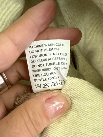 Description : Light cream denim shacket with a collared button-front, two chest flap pockets, rolled long sleeves and a raw frayed hem for a relaxed, slightly oversized look.