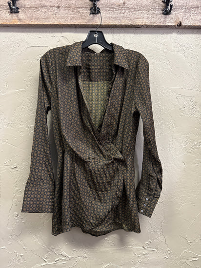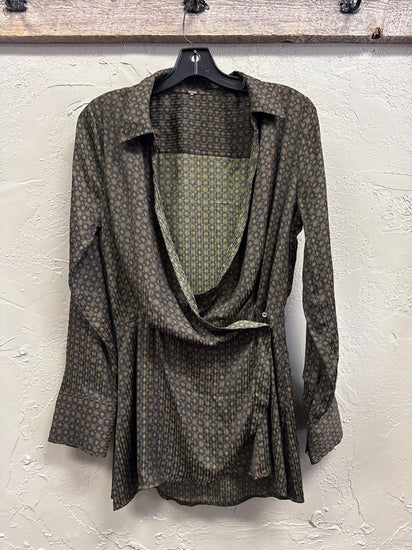 Description : Free People wrap top featuring long sleeves, collared neckline, deep V-neck with a fixed wrap design.