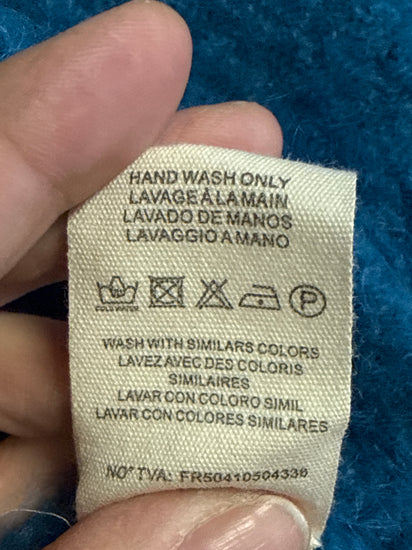 Description : Oversized, sleeveless, V-neck sweater vest in a rich teal blue color, featuring button-down closure and two front patch pockets
