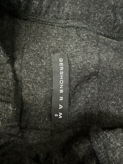 Description : Midi-length charcoal knit skirt with a fitted waistband and draped, twisted bubble hem creating soft pleats at the front. The fabric is stretchy for a relaxed, casual silhouette.