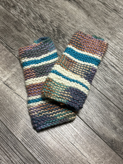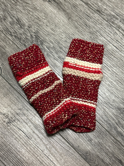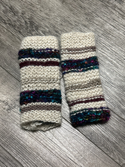 Description : All hand-warmers are hand knit out of recycled and reclaimed yarns. No two are alike.