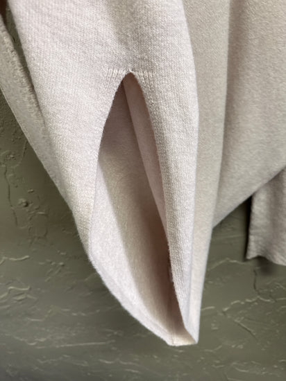 Description : Open weave stitching at key stretch points ensures comfort and texture, while the wool-free knit is cut asymmetrically for a drape that falls fluidly in all the right places. Dress it up with your favorite satins, or level up your laid-back look with knitted trousers. This fluid design offers endless styling possibilities, making it your go-to for luxe layering. S/M = size 2 through 10