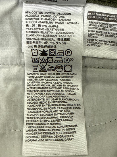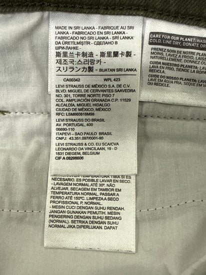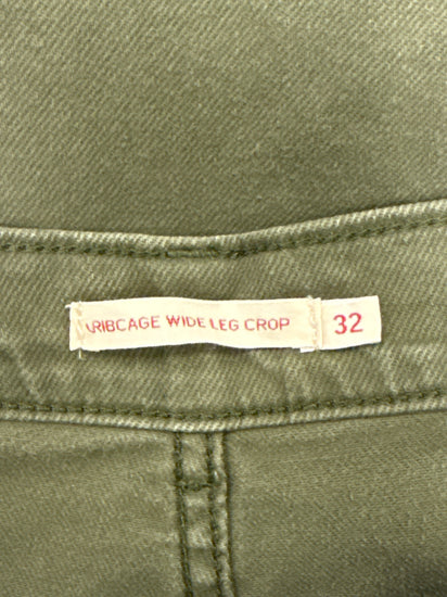 Description : Olive green, ribcage wide-leg crop pant with a button and zipper closure and front pockets.