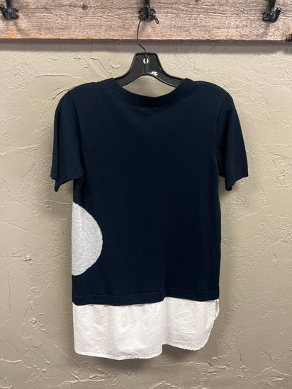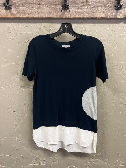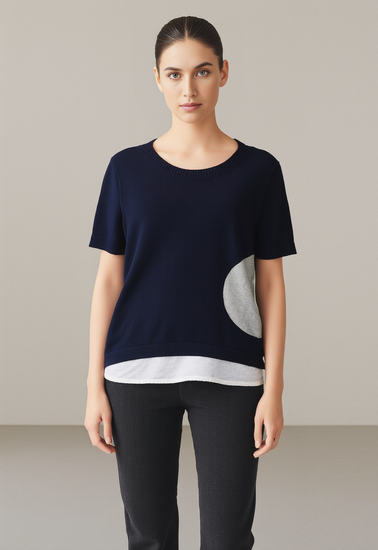 Description : Made from a luxe Cotton Cashmere blend, this sweater has an undone ease with a layered detail.