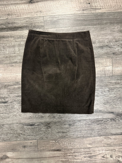 Description : Brown corduroy pencil skirt with a central green-and-yellow plaid panel, visible vertical corduroy ribs and a simple waistband and side zipper