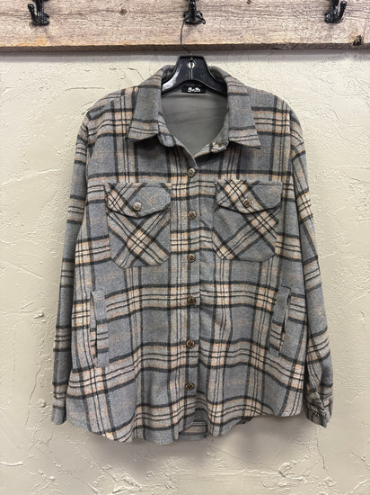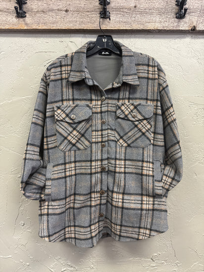 Description : Shackets are the only trend you will want to be a part of this season! This one from Miss Me is oversized and the perfect neutral colorway to go with everything