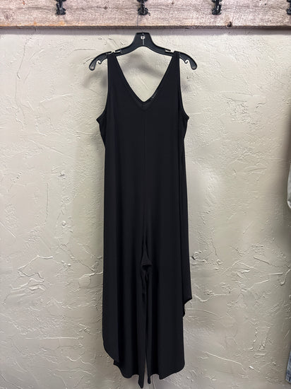 Description : This super comfortable romper from MSK has wide, flowy gaucho legs with an asymmetrical hem and double-V neckline