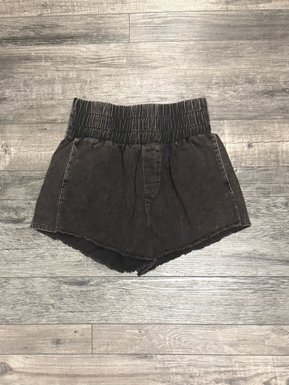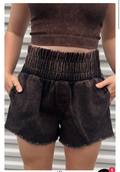 Description : Twill shorts are a wardrobe staple for the upcoming fall season. Made from a mineral-washed fabric and featuring frayed raw hems and front and back pockets, these versatile shorts are perfect for any occasion.