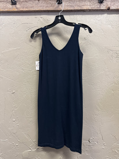 Description : Reversible v-scoop neck tank dress in navy blue & beige