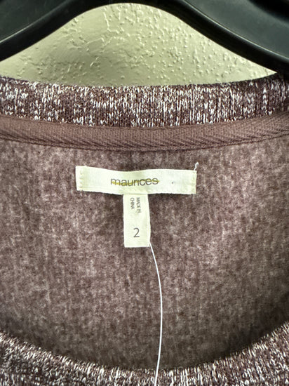 Description : New without tags, long-sleeve fleece-type dress in a heathered muted mauve with a crew neckline and relaxed A-line silhouette. Textured knit surface, cuffed sleeves and an off-center short zipper detail at the hem for subtle asymmetry