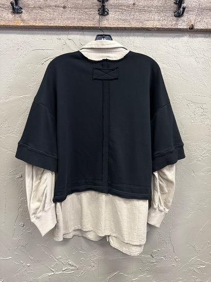 Description : New with tags. A faux layered French terry contrast top is a stylish and versatile piece that offers the look of layering without the bulk. The French terry fabric provides a comfortable and casual feel, perfect for everyday wear. The faux layering detail adds a fashionable touch, creating a layered look with contrasting fabric or colors. This type of top is great for achieving a put-together and stylish outfit with minimal effort. Pair it with jeans or leggings for a casual chic look, or dress it up with a skirt and heels for a more polished ensemble. Measurements taken from size MEDIUM
