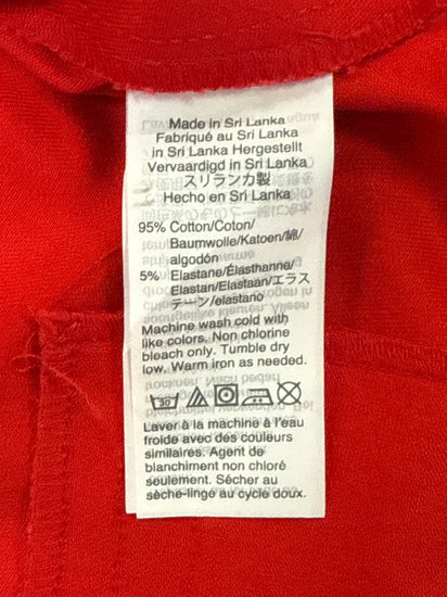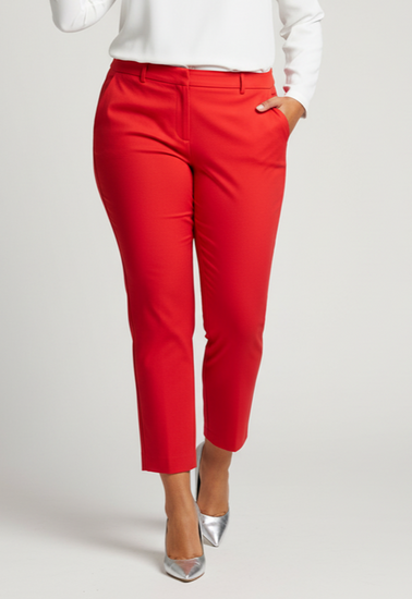Description : New with tags, bright red slim-fit pants with a mid-rise waistband, belt loops, hidden side zipper and a clean front.