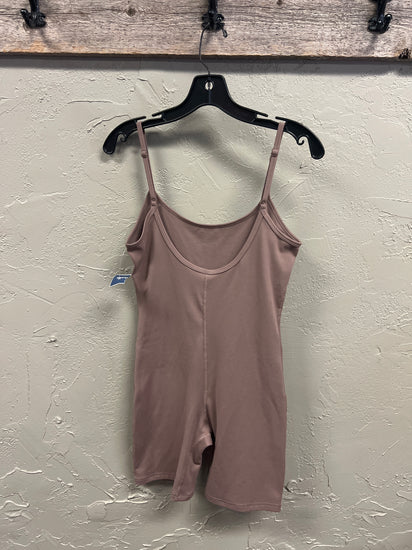 Description : Taupe colored bodysuit, fitted design, thin adjustable spaghetti straps, scoop neckline, shorts length with hemmed edge