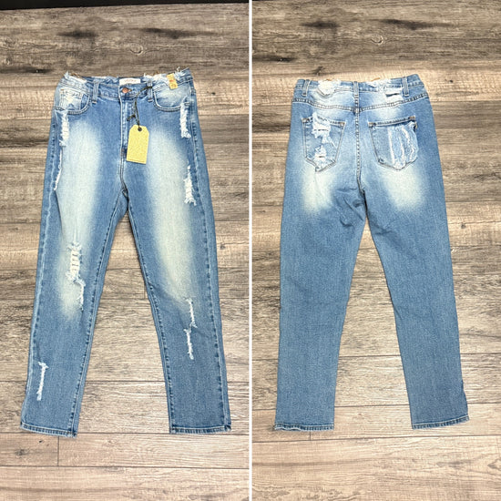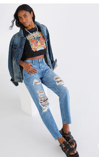 Description : Everything you want in a '90s jean: slightly slouchy, tapered leg + lots of lived-in destruction.