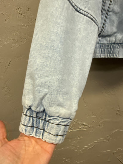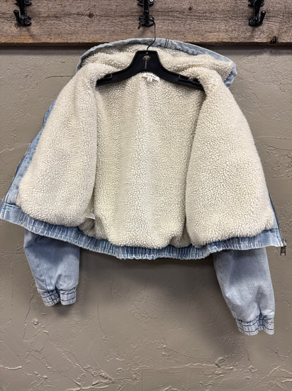 Description : Sherpa lined denim hooded jacket with a zipper front and elasticated cuffs and hem