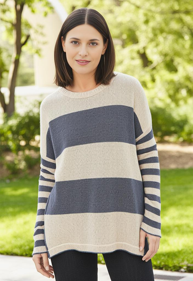 Description : Striped knit sweater with a crew neckline, long sleeves and a relaxed fit.