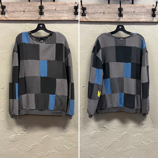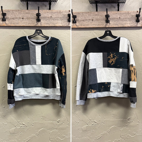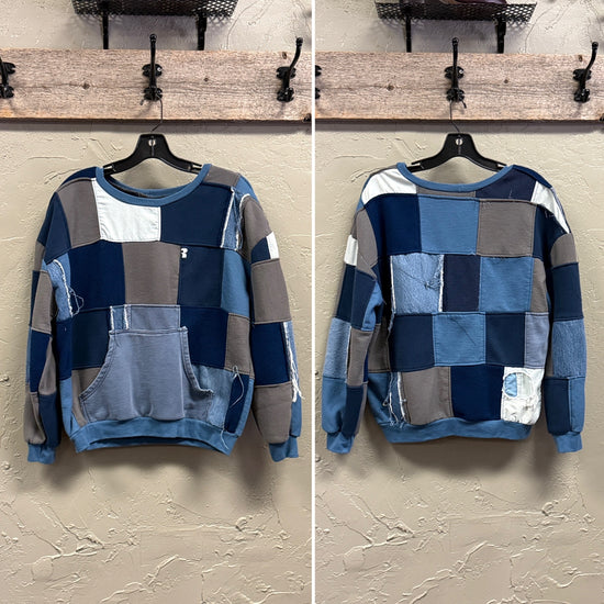 Description : The Patchwork Crewneck is hand made in house from upcycled & reclaimed sweatshirts/sweatpants. These pieces feature a unique patch work design with a classic crew neck style. Each piece is one-of-a-kind, making it both environmentally friendly and fashionably individual