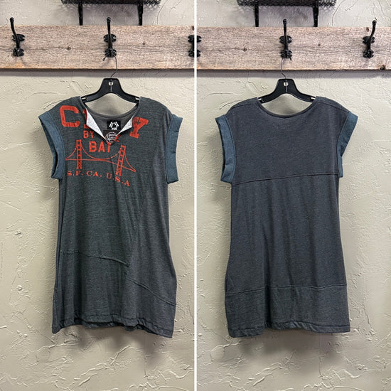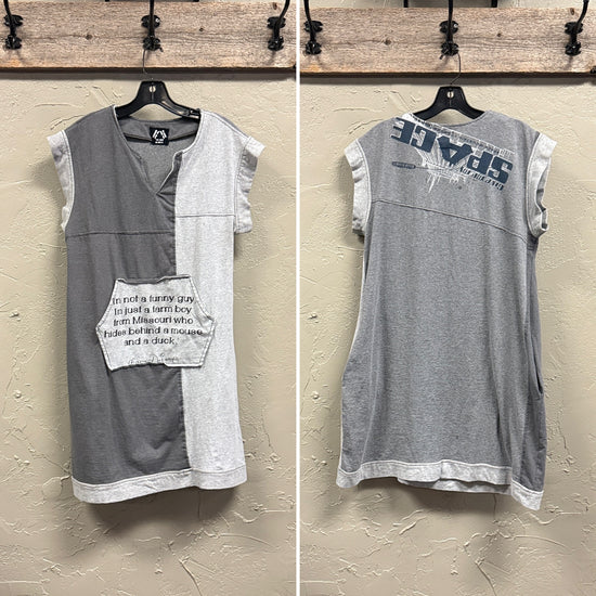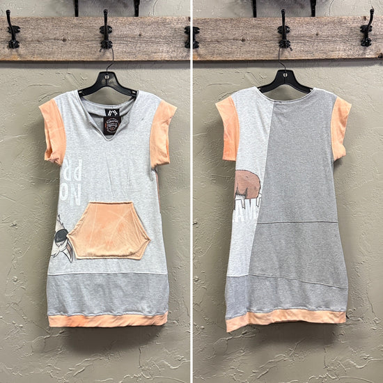 Description : Made from unwearable t-shirts, these dresses are cute either oversized or fitted. All have side pockets (right?!?) and run above the knee.