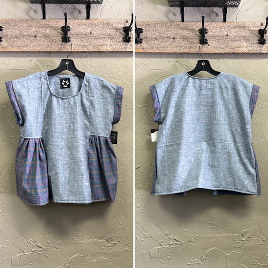 Description : Boxy short-sleeve tops, made from vintage deadstock fabrics - mostly wool and wool blends . They are all experiments, so have slightly different details. MEASURMENTS FOR SMALL: Sleeve: 1"/5" Bust: 40" Shoulder to Hem:23" Shoulder: 19.5" MEASURMENTS FOR M/L: Sleeve: 1"/8" Bust: 42" Shoulder to Hem: 24" Shoulder: 23.5"