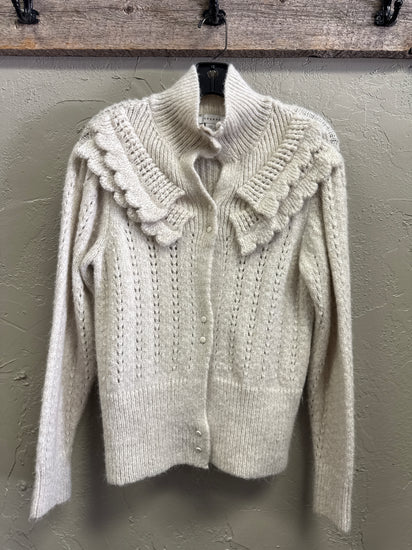 Description : Cardigan by Topshop Serving laid-back luxe Pointelle design High neck Secure fastening Frill detail to front Long sleeves Ribbed trims Regular fit True to size