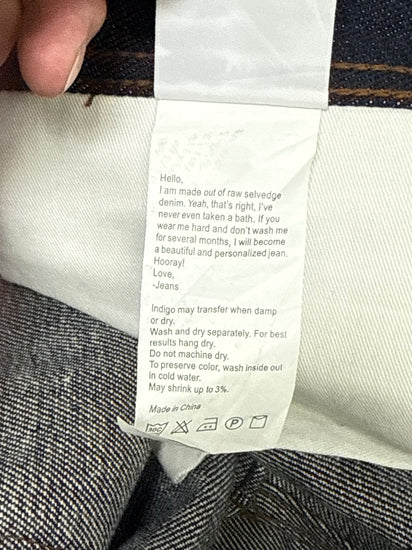 Description : The UB221 is their tapered fit: roomy seat and thigh tapering to a narrow leg opening cut and sewn from 21oz raw indigo selvedge denim. The Sanforized 21oz fabric is around twice as heavy as most denim, making it hardwearing and rigid when new but will soften and fade beautifully when broken-in. Signature blue ear selvedge ID. Unbranded leather patch. Union Special chain-stitched hems. Hidden back pocket rivets. Copper tin button fly.