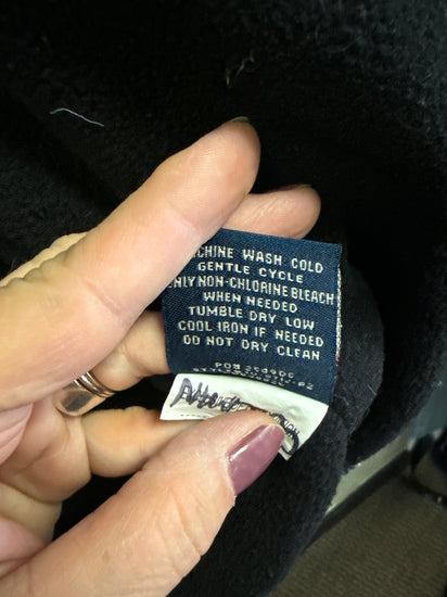 Description : Front-zip black nylon windbreaker with a high white stand collar, white and navy side panels and piping, elastic hem and cuffs, and a small U.S. Polo Assn. logo with an American flag on the left chest. The jacket has two front welt pockets and a full-length silver zipper.