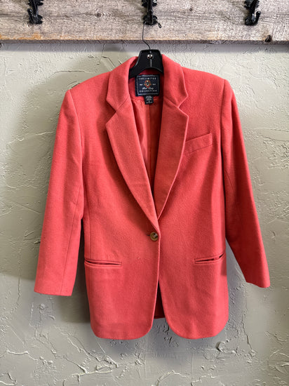 Description : Single-breasted coral blazer with notch lapels, one button closure, welt pockets, long sleeves and a smooth lined interior.